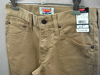 ○=在庫あり△=残りわずか×=完売 PRICE:税込)¥10.800(本体価格¥10.000) PRICE:税込)¥7.452 ---------------------------------------------------- ジーンズの老舗ブランド、BIGJOHNより限定発売のストレッチベルボトムです。 ストレッチ素材を使っていますので ピッタリ穿いても圧迫感や突っ張る感じがあまりなく とても穿きやすいのがポイントです。 色はやや濃い目のベージュで生地はやや薄手ですので スタイルを問わず様々なファッションに合わせやすそうです。 各部位の大きさや実寸サイズをお知りになりたい方は 採寸希望サイズをご明記の上メールにてお問い合わせ下さい。