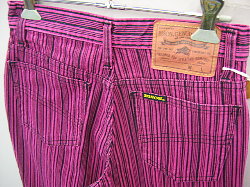 BISON MODEL:1111 COLOR:216(ピンク) SIZE:28インチ QUALITY:綿100% PRICE:\2900 ランダムストライプのベルボトムです。 こちらの商品は後染めのピンク。 とても鮮やかなピンクです。 後染めをかけていますので 通常商品よりもやや小さめになっています。 在庫わずかです。お早めにどうぞ。 パソコン・モニターの環境などにより 実際の色と異なって見える場合があります。 ご了承下さいませ。 |
