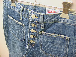 BISONの定番中の定番!! ボタンフライに4パッチポケット仕様。 ベルボトム初心者からマニアまで 幅広い方に支持されるベーシックタイプ。 まずこの一本を穿いてBISONのこだわりを感じて欲しい。 激しいウォッシュとダメージを加え 長年穿きこんだかのような色合いに。 ポケットやベルトラインの部分的な擦れ具合は絶妙。 とてもユーズド感のある仕上がりになっています。 |