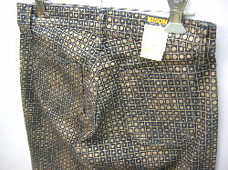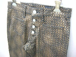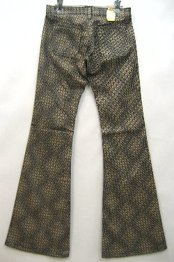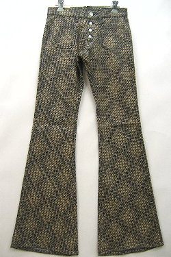 BISON ドット柄ストレッチベルボトム MODEL:1294 COLOR:903(茶色) SIZE:完売しました QUALITY:綿95%・ポリウレタン5% PRICE:税込)\8295→¥6195 本体)\7900→¥5900 画像では分かりにくいですが ストレッチのベルボトム全体に ドット(水玉)の柄がダイヤ状に入っています。 ・フォーパッチポケット・ボタンフライで股上は浅めです。 ・ストレッチなのでピッタリ穿いても動きやすいです。 ・色違いのベージュもあります。