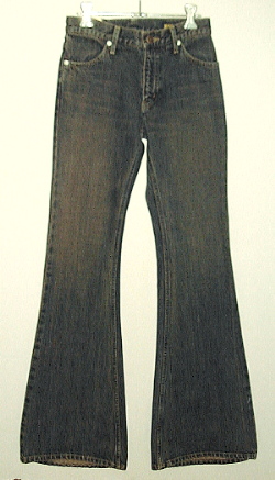 ご注文前に在庫確認をお願いします。 5ポケットジッパーフライの ベーシックなデニムベルボトムです。 カラーはユーズドウォッシュです。 縦落ち感のある中古加工の風の ハードな仕上がりは 洗いざらしたジーンズの雰囲気です。 |