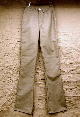 ポリウレタンコーティング(フェイクレザー)のブーツカットパンツです。形はすっきり足長に見えます。