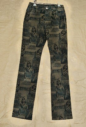 ストレッチ素材のタイトストレートROCKな雰囲気のプリントが全面に