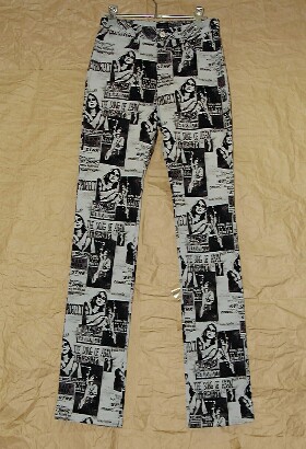 ストレッチ素材のタイトストレートROCKな雰囲気のプリントが全面に