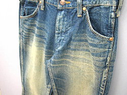 ![]() 腿からヒザにかけてのハードな擦り ![]() バックポケットにもシワ加工が入っています |