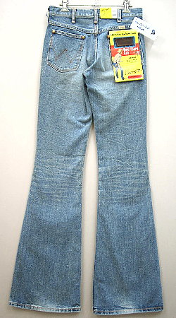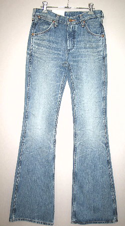 ラベルには「BellFlare」(ベルフレアー) という表記があり、ベルボトムというより ベルボトムとブーツカットの 中間のようなシルエットです。 BISONなどに比べると 全体的に1サイズほど大きいようです。 *実寸はお問い合わせ下さい。 フロントはもちろんヒップや ヒザの裏やスソなど、細かい所にまで ユーズド感を出しており もう何年も穿いているかのような 色合いが大変カッコ良いです。 |