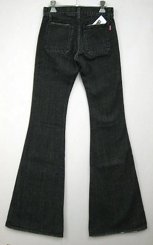 「穿く」事と「洗濯」を繰り返しする事によって 「色落ち」や「生地が体に馴染む」感覚を楽しめると思います。 硬くて穿き難い場合は、初めに軽く水通しすると少し穿きやすくなります。 なるべく色を落としたくない場合は「裏返してネットに入れて洗う」 「洗剤を使わないで洗う」「洗濯時間を短かくする」などといった方法があります。 色を落とさないためにジーンズを洗わないというのも一つの手です。 しかしそれは色落ちはしませんが、逆に生地が痛みやすくなります。 ただでさえベルボトムはピッタリと穿くので、通常より生地に負荷がかかります。 その上に汗や油分などの汚れを含めば今度は生地の強度がガクンと落ちます。 ですからジーンズを扱うプロとしては、「洗わない」のはオススメ出来ません。 強度が落ちたところへ強い負荷がかかれば破れたり裂けたりしても不思議はないからです。 洗いすぎるのも痛む原因ですが、明らかに汚れたり、生地に張りがなくなってきたら 洗ってあげるくらいが丁度良いのではないかと思います。 ノンカットでのレングスは約95cmと、かなり長めなっています。 洗濯による縮みや穿きジワなどを考慮し、長めにカットすることをお勧めいたします。 ベルボトム愛用者には大変気になるスソ幅も BISONのビッグベルやBIGJOHNのスーパーベルとまではいきませんが 他メーカーのレギュラーベルボトムより広めに作りましたので カットしても十分広がりは残ります。 |