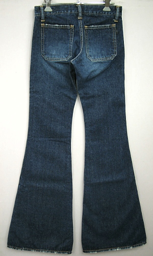 「穿く」事と「洗濯」を繰り返しする事によって 「色落ち」や「生地が体に馴染む」感覚を楽しめると思います。 硬くて穿き難い場合は、初めに軽く水通しすると少し穿きやすくなります。 なるべく色を落としたくない場合は「裏返してネットに入れて洗う」 「洗剤を使わないで洗う」「洗濯時間を短かくする」などといった方法があります。 色を落とさないためにジーンズを洗わないというのも一つの手です。 しかしそれは色落ちはしませんが、逆に生地が痛みやすくなります。 ただでさえベルボトムはピッタリと穿くので、通常より生地に負荷がかかります。 その上に汗や油分などの汚れを含めば今度は生地の強度がガクンと落ちます。 ですからジーンズを扱うプロとしては、「洗わない」のはオススメ出来ません。 強度が落ちたところへ強い負荷がかかれば破れたり裂けたりしても不思議はないからです。 洗いすぎるのも痛む原因ですが、明らかに汚れたり、生地に張りがなくなってきたら 洗ってあげるくらいが丁度良いのではないかと思います。 ノンカットでのレングスは約95cmと、かなり長めなっています。 洗濯による縮みや穿きジワなどを考慮し、長めにカットすることをお勧めいたします。 ベルボトム愛用者には大変気になるスソ幅も BISONのビッグベルやBIGJOHNのスーパーベルとまではいきませんが 他メーカーのレギュラーベルボトムより広めに作りましたので カットしても十分広がりは残ります。 |