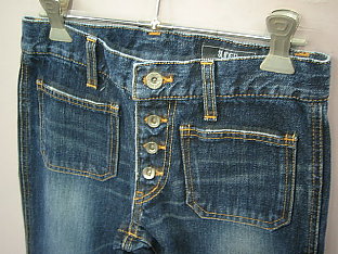 フロントボタンにはヴィンテージジーンズやレプリカジーンズなどに使われる ドーナツボタンを使用し、今までにない雰囲気を出しています。 現在当店にラインナップされているベルボトムでも ドーナツボタンを使用した物は「SLIDER」ブランドだけです。 |