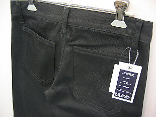 ヒップポケットはやや大きめで、ゴツめの財布やウォレットなども収まりそうです。 スタッフが試着しゴツめのウォレットを入れてみましたが、とてもカッコよかったです。 また、ポケットを下目に付けたことにより後ろからの見た目がバツグンに良くなりました。 |