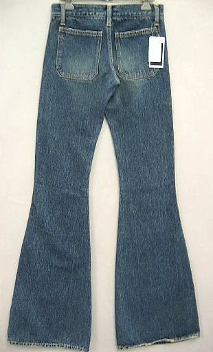 「穿く」事と「洗濯」を繰り返しする事によって 「色落ち」や「生地が体に馴染む」感覚を楽しめると思います。 硬くて穿き難い場合は、初めに軽く水通しすると少し穿きやすくなります。 なるべく色を落としたくない場合は「裏返してネットに入れて洗う」 「洗剤を使わないで洗う」「洗濯時間を短かくする」などといった方法があります。 色を落とさないためにジーンズを洗わないというのも一つの手です。 しかしそれは色落ちはしませんが、逆に生地が痛みやすくなります。 ただでさえベルボトムはピッタリと穿くので、通常より生地に負荷がかかります。 その上に汗や油分などの汚れを含めば今度は生地の強度がガクンと落ちます。 ですからジーンズを扱うプロとしては、「洗わない」のはオススメ出来ません。 強度が落ちたところへ強い負荷がかかれば破れたり裂けたりしても不思議はないからです。 洗いすぎるのも痛む原因ですが、明らかに汚れたり、生地に張りがなくなってきたら 洗ってあげるくらいが丁度良いのではないかと思います。 ノンカットでのレングスは約95cmと、かなり長めなっています。 洗濯による縮みや穿きジワなどを考慮し、長めにカットすることをお勧めいたします。 ベルボトム愛用者には大変気になるスソ幅も BISONのビッグベルやBIGJOHNのスーパーベルとまではいきませんが 他メーカーのレギュラーベルボトムより広めに作りましたので カットしても十分広がりは残ります。 |