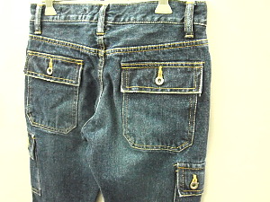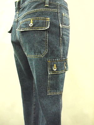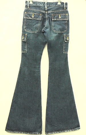 サイドポケットの位置・大きさなどは 最も足が細く、長く見える絶妙なポジションに配置されています。 今回はヒップのポケットにもフラップを取り付け 通常のベルボトムとの差別化を図っています。 |