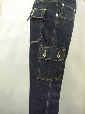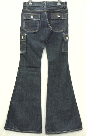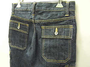 サイドポケットの位置・大きさなどは 最も足が細く、長く見える絶妙なポジションに 配置されています。 今回はヒップのポケットにもフラップを取り付け 通常のベルボトムとの差別化を図っています。 |