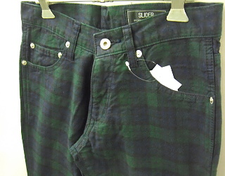 BRAND:SLIDER(スライダー) JET BLACK STYLE:5ポケット・チェック柄ベルボトム LOT:CH3584Z COLER:GR(グリーン/ブラックウォッチ) QUALITY:綿100%