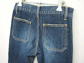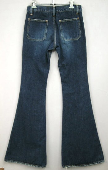 「穿く」事と「洗濯」を繰り返しする事によって 「色落ち」や「生地が体に馴染む」感覚を楽しめると思います。 硬くて穿き難い場合は、初めに軽く水通しすると少し穿きやすくなります。 なるべく色を落としたくない場合は「裏返してネットに入れて洗う」 「洗剤を使わないで洗う」「洗濯時間を短かくする」などといった方法があります。 色を落とさないためにジーンズを洗わないというのも一つの手です。 しかしそれは色落ちはしませんが、逆に生地が痛みやすくなります。 ただでさえベルボトムはピッタリと穿くので、通常より生地に負荷がかかります。 その上に汗や油分などの汚れを含めば今度は生地の強度がガクンと落ちます。 ですからジーンズを扱うプロとしては、「洗わない」のはオススメ出来ません。 強度が落ちたところへ強い負荷がかかれば破れたり裂けたりしても不思議はないからです。 洗いすぎるのも痛む原因ですが、明らかに汚れたり、生地に張りがなくなってきたら 洗ってあげるくらいが丁度良いのではないかと思います。 ノンカットでのレングスは約92cmと、かなり長めなっています。 洗濯による縮みや穿きジワなどを考慮し、長めにカットすることをお勧めいたします。 ベルボトム愛用者には大変気になるスソ幅も BISONのビッグベルやBIGJOHNのスーパーベルとまではいきませんが 他メーカーのレギュラーベルボトムより広めに作りましたので カットしても十分広がりは残ります。 |