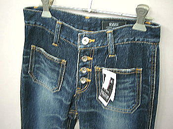 フロントボタンにはヴィンテージジーンズやレプリカジーンズなどに使われる ドーナツボタンを使用し、今までにない雰囲気を出しています。 現在当店にラインナップされているベルボトムでも ドーナツボタンを使用した物は「SLIDER」ブランドだけです。 |