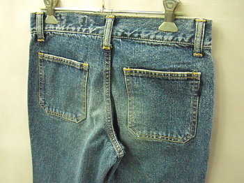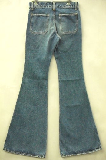 「穿く」事と「洗濯」を繰り返しする事によって 「色落ち」や「生地が体に馴染む」感覚を楽しめると思います。 硬くて穿き難い場合は、初めに軽く水通しすると少し穿きやすくなります。 なるべく色を落としたくない場合は「裏返してネットに入れて洗う」 「洗剤を使わないで洗う」「洗濯時間を短かくする」などといった方法があります。 色を落とさないためにジーンズを洗わないというのも一つの手です。 しかしそれは色落ちはしませんが、逆に生地が痛みやすくなります。 ただでさえベルボトムはピッタリと穿くので、通常より生地に負荷がかかります。 その上に汗や油分などの汚れを含めば今度は生地の強度がガクンと落ちます。 ですからジーンズを扱うプロとしては、「洗わない」のはオススメ出来ません。 強度が落ちたところへ強い負荷がかかれば破れたり裂けたりしても不思議はないからです。 洗いすぎるのも痛む原因ですが、明らかに汚れたり、生地に張りがなくなってきたら 洗ってあげるくらいが丁度良いのではないかと思います。 ノンカットでのレングスは約92cmと、かなり長めなっています。 洗濯による縮みや穿きジワなどを考慮し、長めにカットすることをお勧めいたします。 ベルボトム愛用者には大変気になるスソ幅も BISONのビッグベルやBIGJOHNのスーパーベルとまではいきませんが 他メーカーのレギュラーベルボトムより広めに作りましたので カットしても十分広がりは残ります。 |
