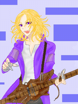 ・名前…ユネ ・男。 ・178cm、67kg。24歳くらい。 ・関西弁(大阪弁)。 ・自称、“愛を求めて彷徨う放浪の吟遊詩人”らしい。 ・一人称 俺 二人称 親しい人には"お前"。赤の他人は"アンタ"。 三人称 俺ら。アンタら。アイツら。 ・いつもふざけたような口調。 ・ノリが良くボケもツッコミも難なくこなす。 ・態度が軽い。口調も軽い。 ・綺麗なお姉さん、好きです。 ・綺麗なお兄さんも好きです。 ・俗に言う両刀使い。 ・ギターのような(?)モノを奏で、歌を歌いながら旅している。(※この楽器も名前募集中です。) ・透き通るように力強く響く歌声。 ・声に多少の“力”を持っていて、言霊を操ることができる。 ・絶対音感の持ち主。 ・たまに寒ーいオヤジギャグを跳ばす。 ・楽器はピックのかわりに指に装着している爪で弾いて音を出す。弾き方によってオルゴールのような繊細な音からエレキギターのような激しい音まで自由自在。ギッターヘッド(?)が二つあって、それぞれ音別々の音を出す。 ・楽器を弾いている最中はいつも笑顔で笑っている。 ・嫌いな奴にはとことん態度と口が悪い。 ・ピョンピョンと跳ねた猫毛。長さは肩のちょっと下まで。 ・辛党。酒に強い。辛いモノにも強い。 ・軽く高所恐怖症。 ・戦闘はもっぱら肉弾戦が主。時には自分の楽器を使うこともある。 ・真剣になるときにはちゃんと真剣になれる。 |